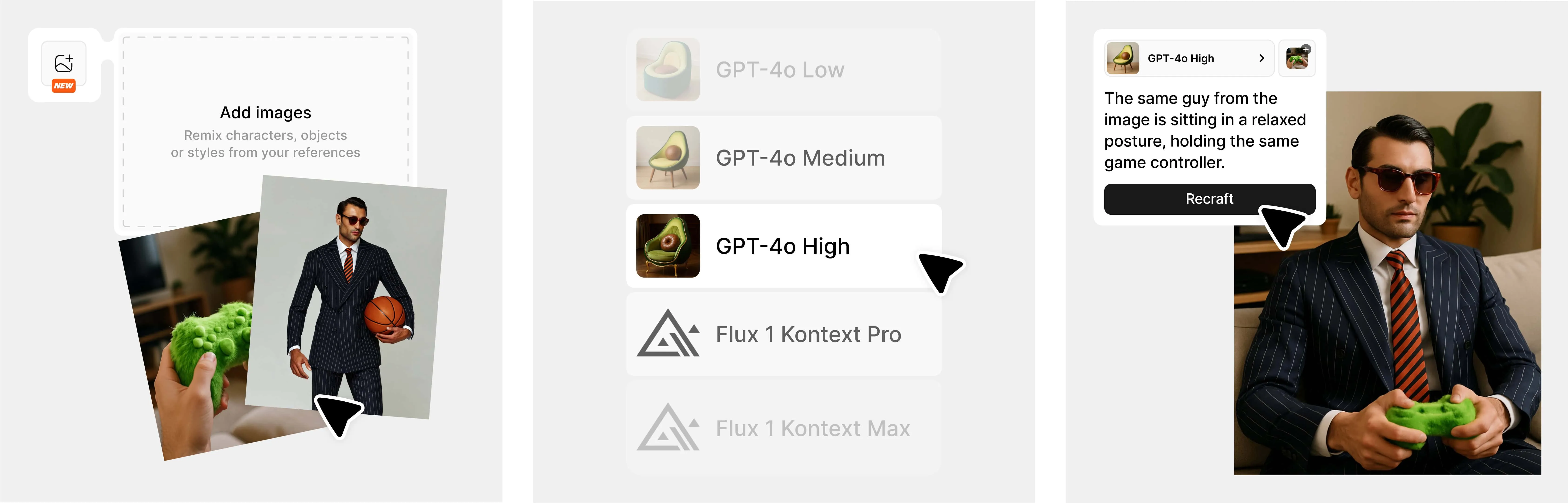 Recraft is evolving! Starting this week, we’re introducing the most advanced and impressive way to work with your images: Natural language editing powered by leading external models, including GPT-4o and Flux Kontext.