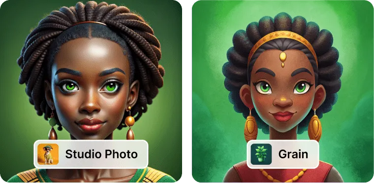 Recraft’s AI character generator supports photorealistic designs. Recraft’s style library allows users to create their own styles by uploading reference images. Alternatively, designers may use one of Recraft’s pre-made photorealistic styles to generate AI characters and avatars—perfect for presentations, artistic touches for branding, or bold visuals for billboards.
