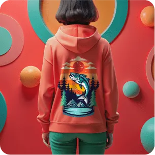 Generate your hoodie or sweatshirt template using a text-to-image AI prompt. Then, use the AI image generator to create a design. You can drop your design right onto the template and Recraft stretches it to fit. Lastly, export your custom hoodie design and use it anywhere you want!