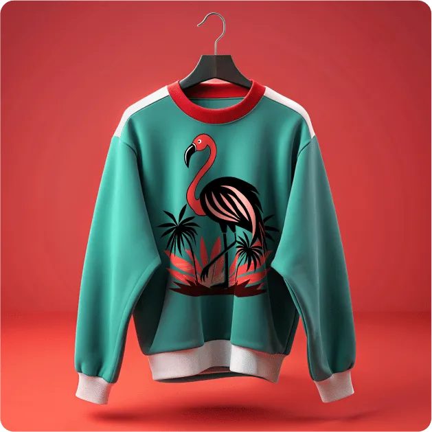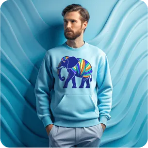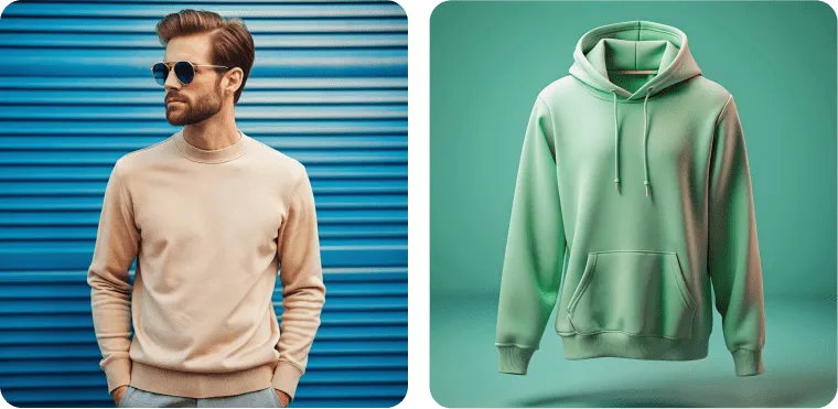 Recraft's AI mockups are always proportional and realistic. For even more detail, enhance the images on your hoodies or sweaters with AI upscaling.