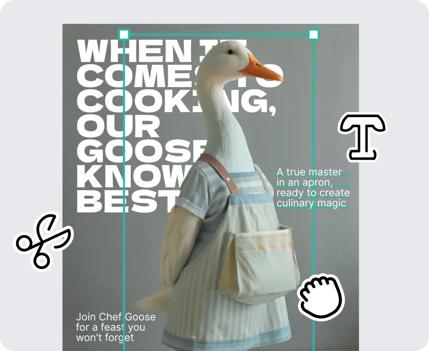 There's no limit. Layer as many design elements as you want, including AI images, illustrations, logos and custom text.